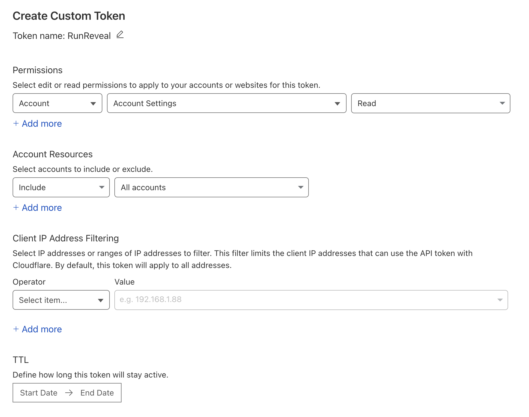 Give the token a name like RunReveal to identify its use. The only permission the token requires is read access to Account Settings.